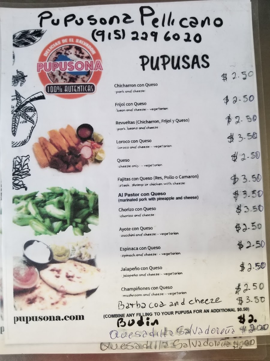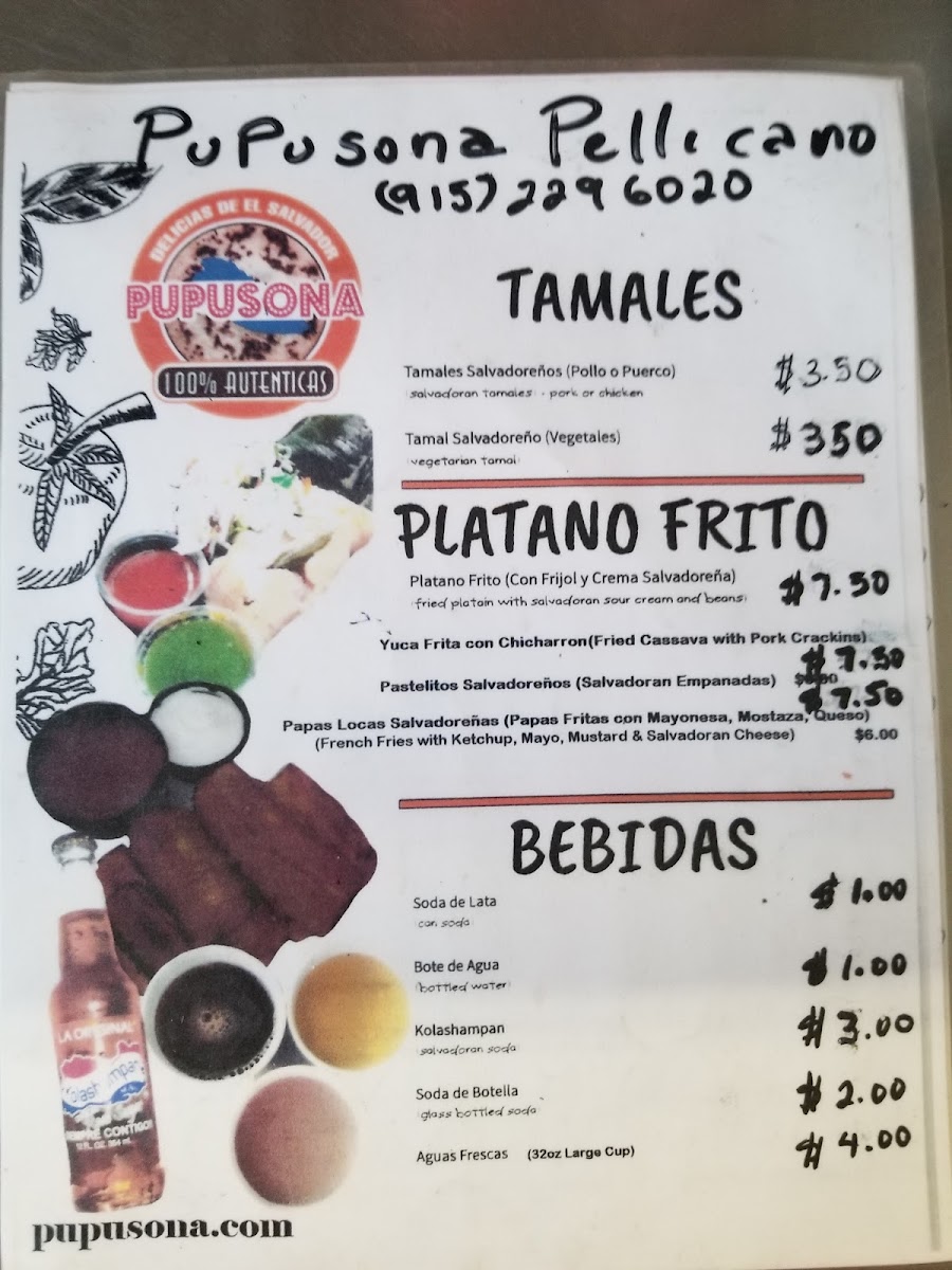 At La Pupusona Pellicano #2, located at 11600 Pellicano Dr, El Paso, TX, the menu offers a delightful blend of Salvadoran specialties that cater to a variety of tastes. The restaurant's star item, the pupusas, stands out with flavorful options like Champinones Con Queso Pupusa, Queso Pupusa, Loroco Con Queso Pupusa, Camaron Con Queso Pupusa, and Chicharron Con Queso Pupusa, each providing a unique twist on the traditional dish. These savory stuffed corn tortillas are a must-try for anyone craving authentic Salvadoran comfort food.